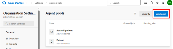 Wanneer de resource is aangemaakt, ga je terug naar je Azure DevOps omgeving. Als je weer naar de settings van de Agent Pool gaat, zie dat de nieuwe MDP pool ertussen staat met de naam die je Azure had geconfigureerd. Klik je op de pool, dan kan je deze qua security en checks/approvals net zo inrichten als elke andere agent pool.