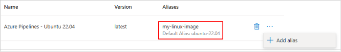 Als laatste kies je welke image(s) de agent pool gaat ondersteunen. Je kiest hier voor 1 of meerdere Azure Pipeline Images (images die door de Microsoft-hosted agents worden gebruikt), Marketplace images of images uit je eigen Compute Gallery. Wanneer je meerdere images beschikbaar maakt via MDP, dien je in je pipeline de alias te selecteren die je hier configureert. De Azure Pipelines Images hebben een standaard alias beschikbaar. Voor andere images zal je deze zelf moeten instellen via het context menu achter de toegevoegde image.