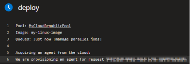 Wanneer je voor het eerst de pool gebruikt (of het is lang geleden dat de pool is gebruikt) en je hebt Standby agent mode niet aangezet, zal de eerste run van een pipeline langer duren, omdat alle agents zijn gedownscaled en er een nieuwe agent moet worden geprovisioned. Je ziet gedurende de provisioning van de agent dan onderstaande melding. Hetzelfde gebeurt wanneer de Agent state is geconfigureerd op Fresh agent every time. Er wordt dan elke run van een pipeline een nieuwe VM gestart, wat erg traag werkt. Deze instellingen kan je in de MDP in Azure wijzigen onder Settings > Scaling. Uiteindelijk zal de job starten en worden afgehandeld zoals elke andere pipeline.